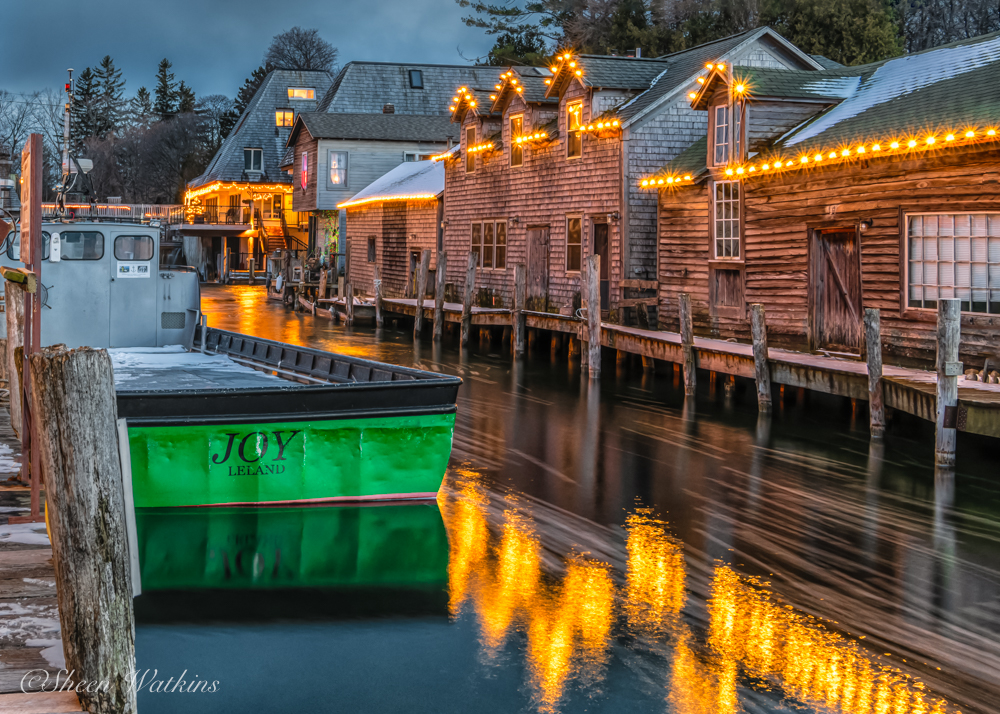 The boat named Joy, resting quietly in Fishtown, Leland, Michigan, feels effortless at first glance. Warm lights reflecting on still water. Balance. Calm. It’s easy to assume joy simply exists in places like this.