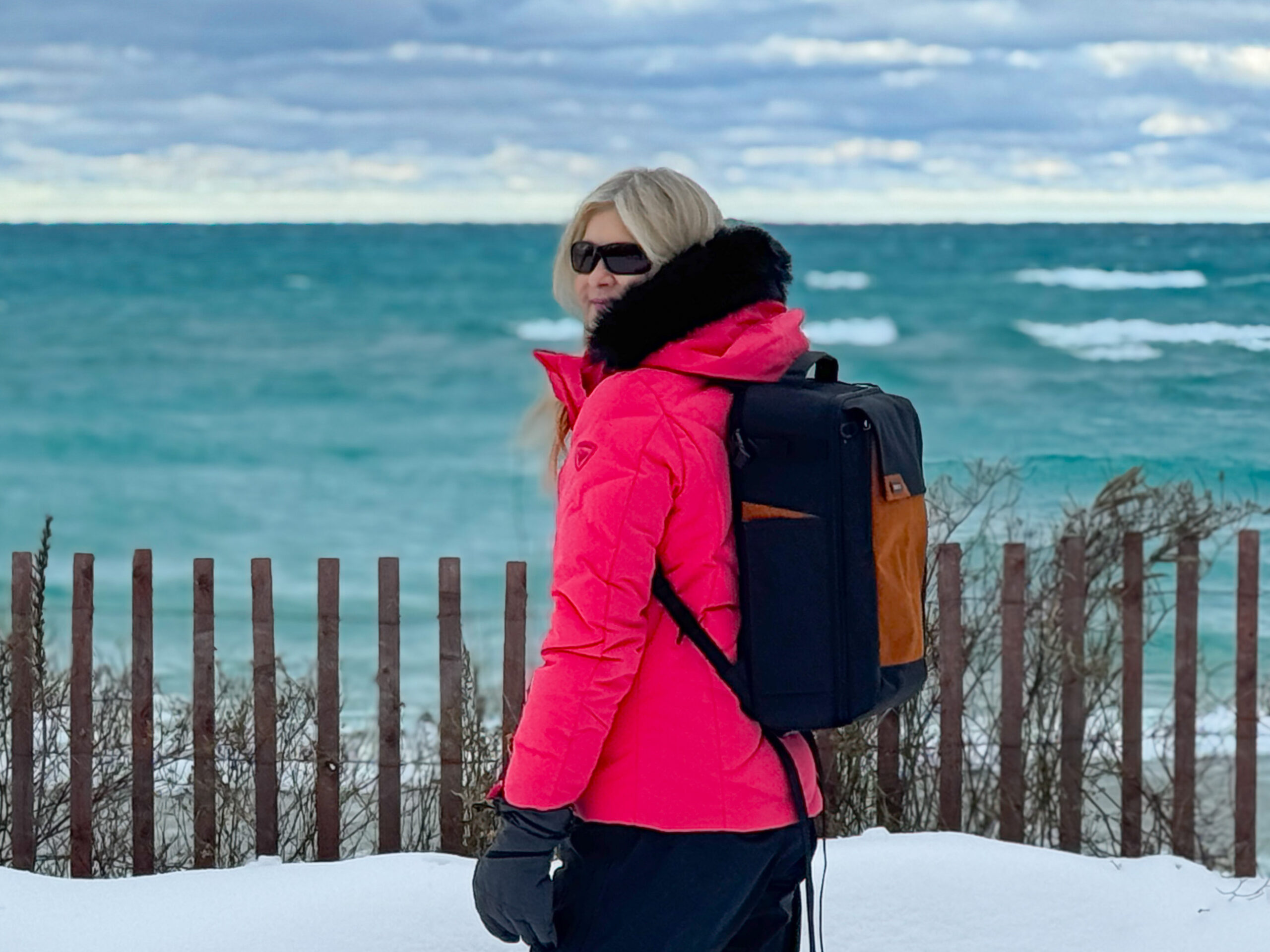 The Think Tank Mirrorless Mover Camera Backback serves multiple photography purposes. The efficient size makes it easy to carry my camera, a couple of lenses and supplies. Or, it it comfortably holds my drone, controller with spare batteries and my camera with a lens attached. The fit on my back sits comfortably too (see featured image above that my hubby took).